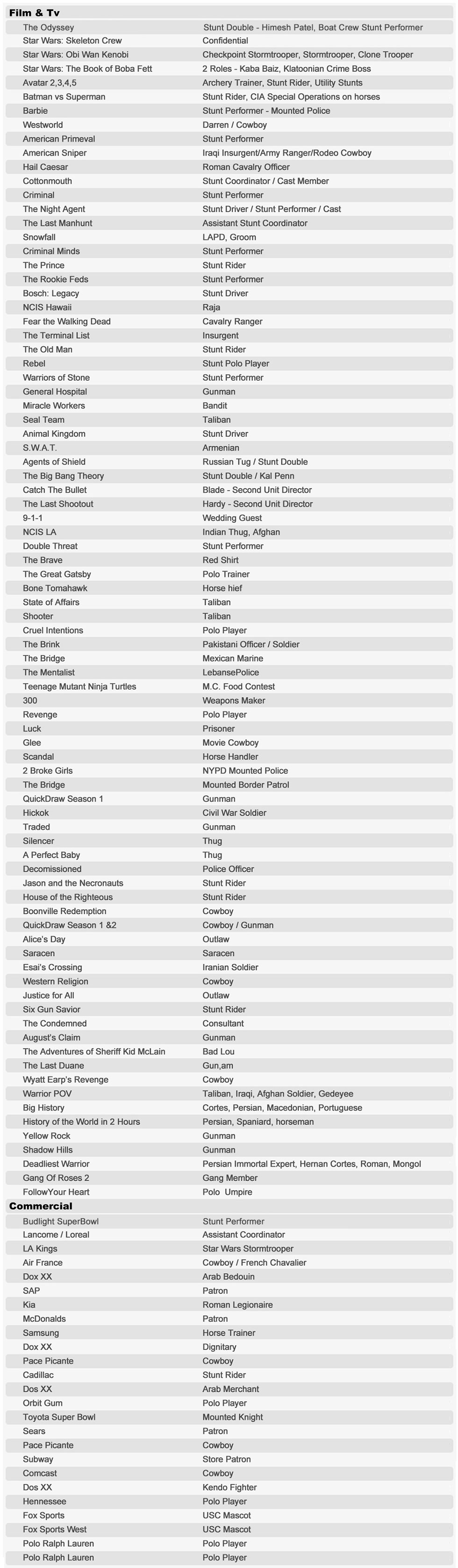 In 2008 Mr. Radpour made a full time transition into the entertainment industry pursuing a career as stunt performer. The career in stunts has blossomed to a larger career in stunts, coordinating, acting and film production. Mr. Radpour has built an extensive network of extremely high net worth and influential individuals within the financial, polo and entertainment industries.